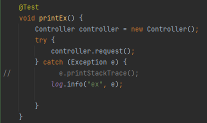 로그를 출력할 때 마지막 파라미터에 예외파라미터를 넣어주면 로그에 스택 트레이스를 출력할 수 있다.